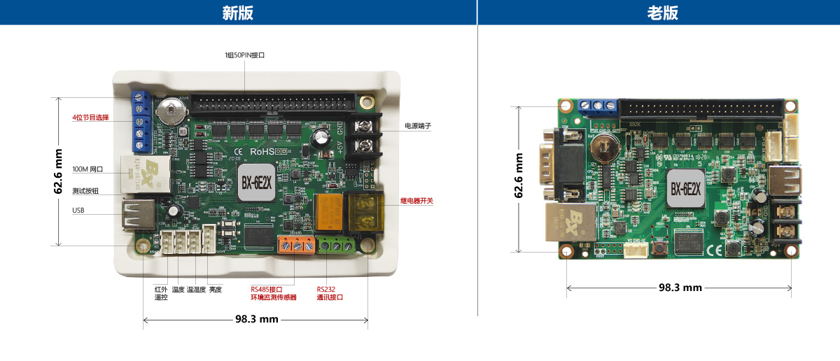 ⑴ 板载亮度/温度/温湿度传感器接口、红外遥控头接口、RS485环境传感器接口;(BX-6MT/6A系列除外)